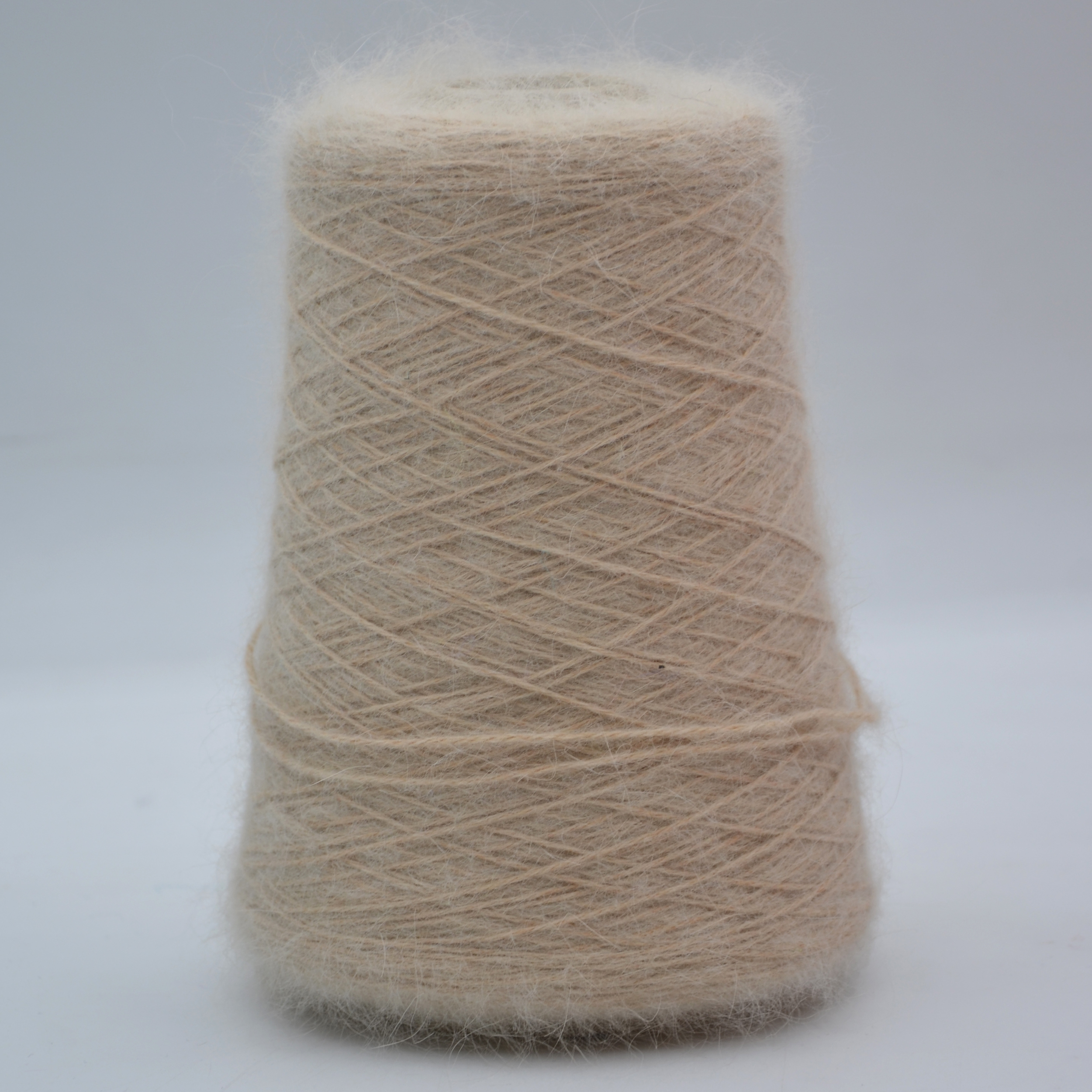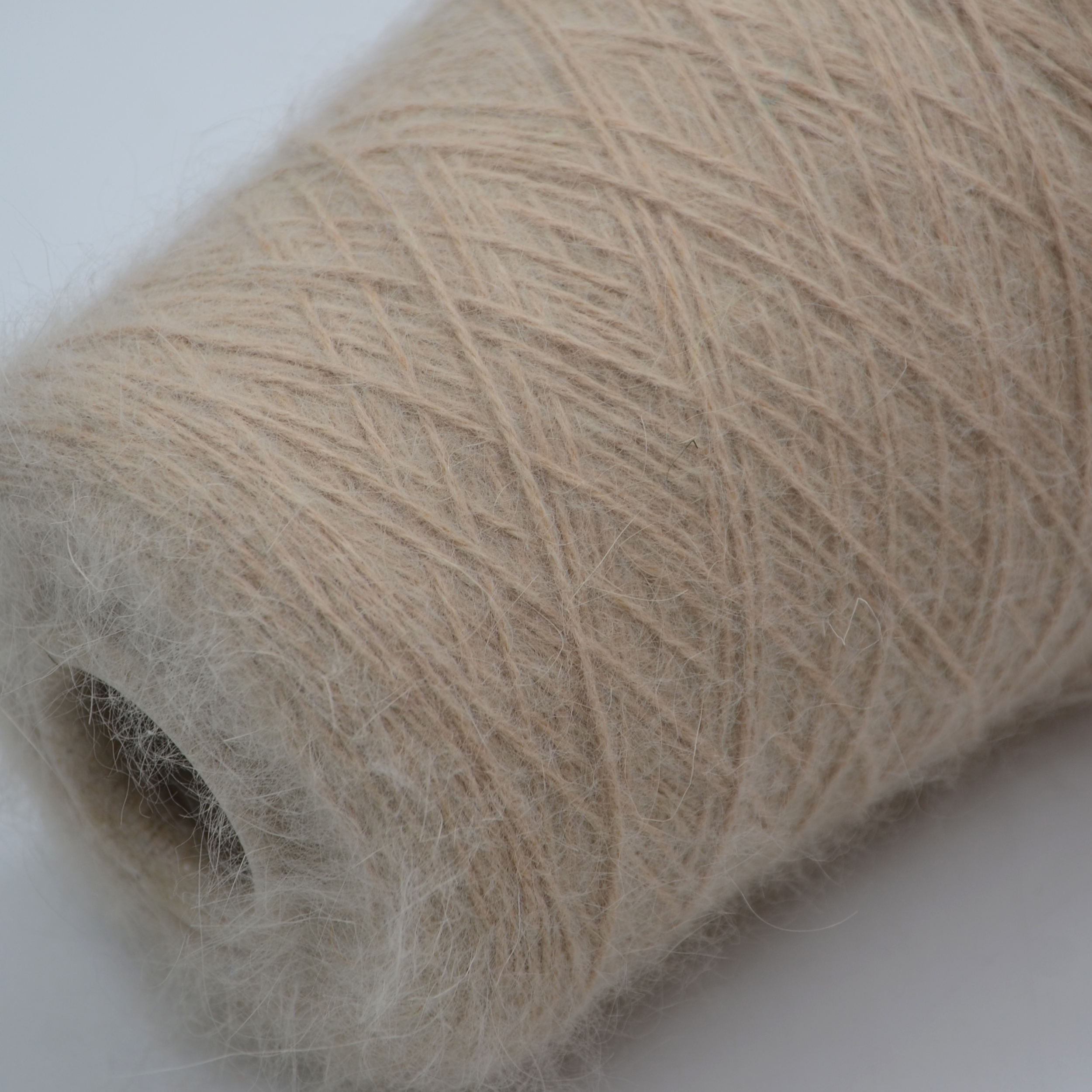Шерсть ангорского кролика имеет полую структуру, легче шерсти других животных и хрупче, поэтому при прядении использована нить полиамида для прочности.