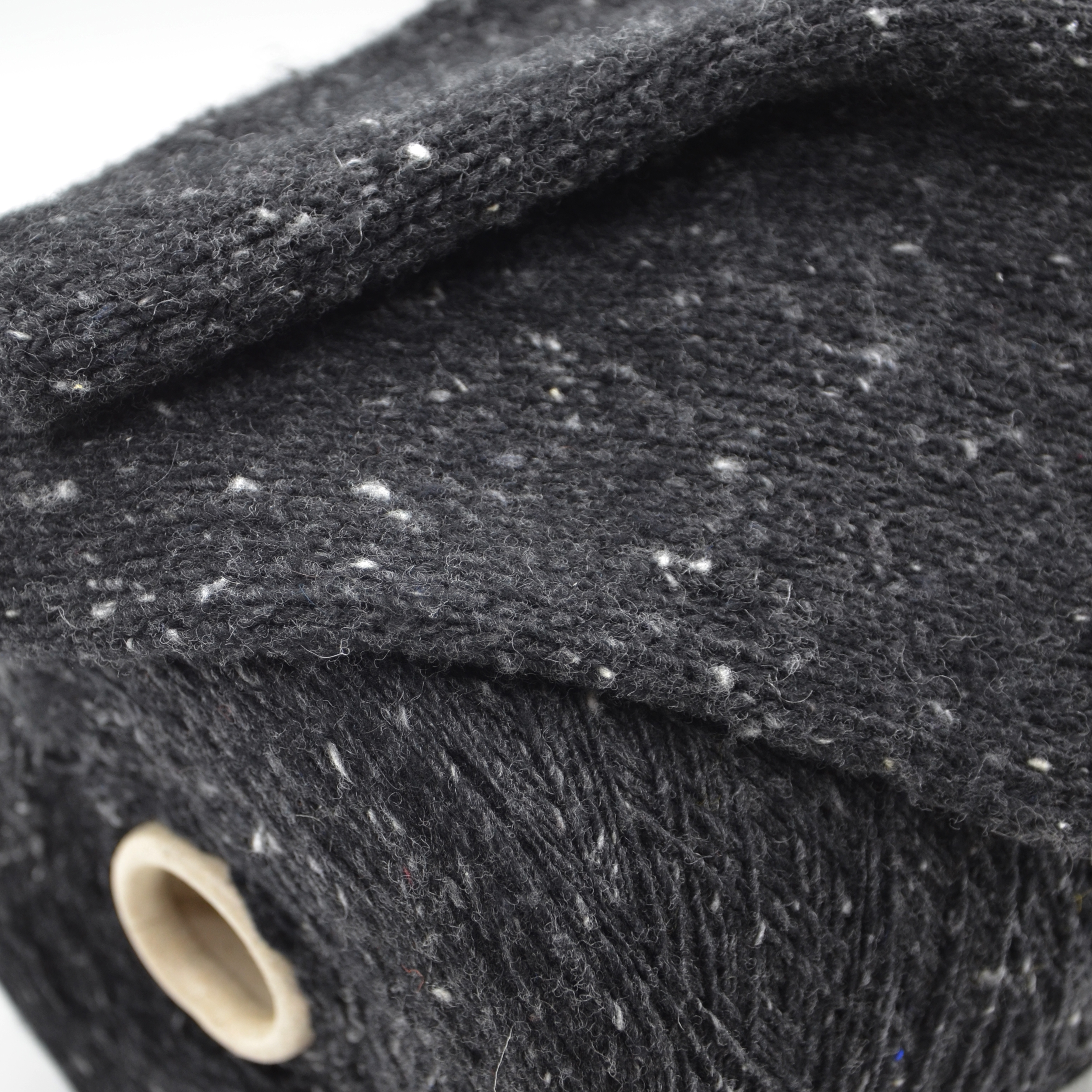 С виду все, как обычно - кардная ниточка с крапушками, а в полотне выясняется, что нить как бы подвспушена, основа полотна упругая, а поверхность покрыта густым пухом! Изделие будет лёгким, воздушным, расход не очень большим.