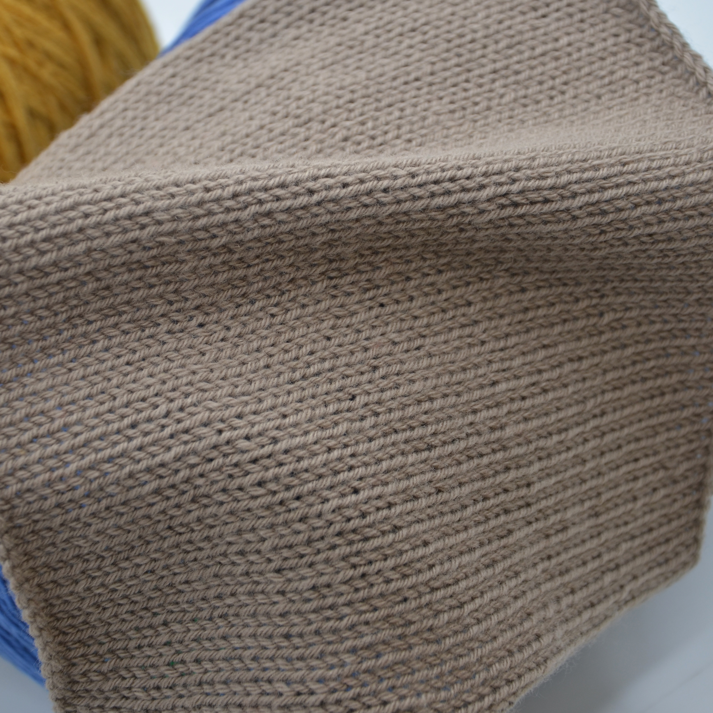Особенности вирджинской шерсти в том, что имея штопорообразный завиток в прядении, ниточка очень стабильна в полотне, упругая и бархатистая, но без кашемира весь пух внутри прекрасного полотна. Полотно наполнено, оно ровное, упругое, держит и возвращает форму, кашемир весь выходит на поверхность, и облегчает изделие.